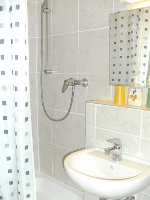 Waschbecken und Dusche